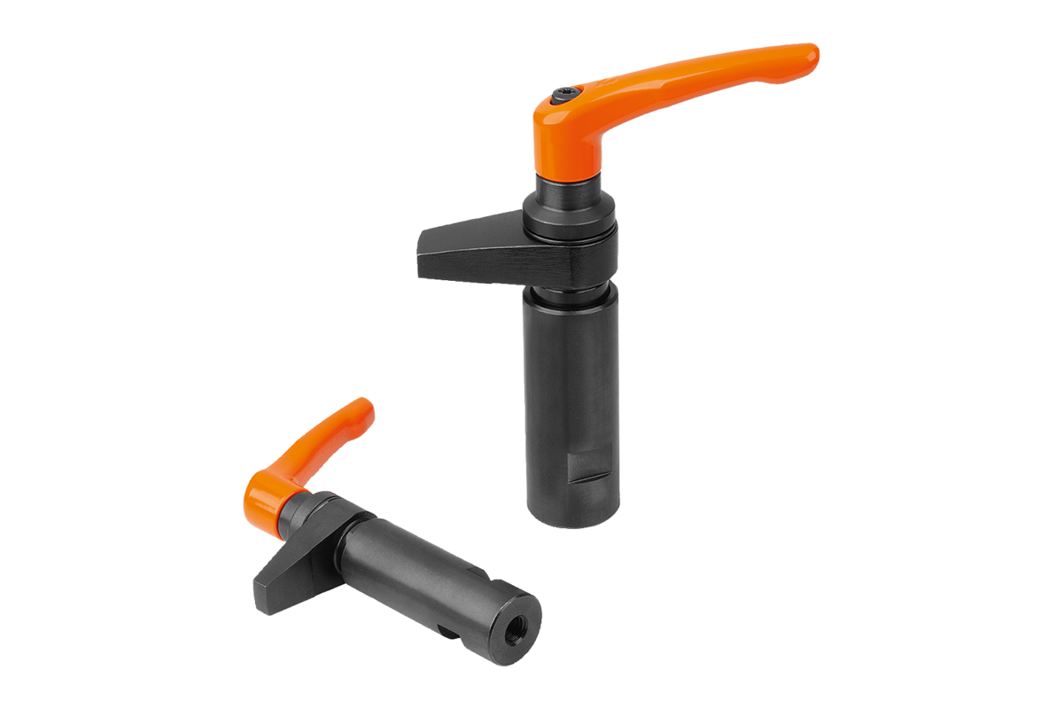 Les crochets de bridage avec embase et palier anti-friction permettent de serrer manuellement des composants en actionnant la manette indexable.