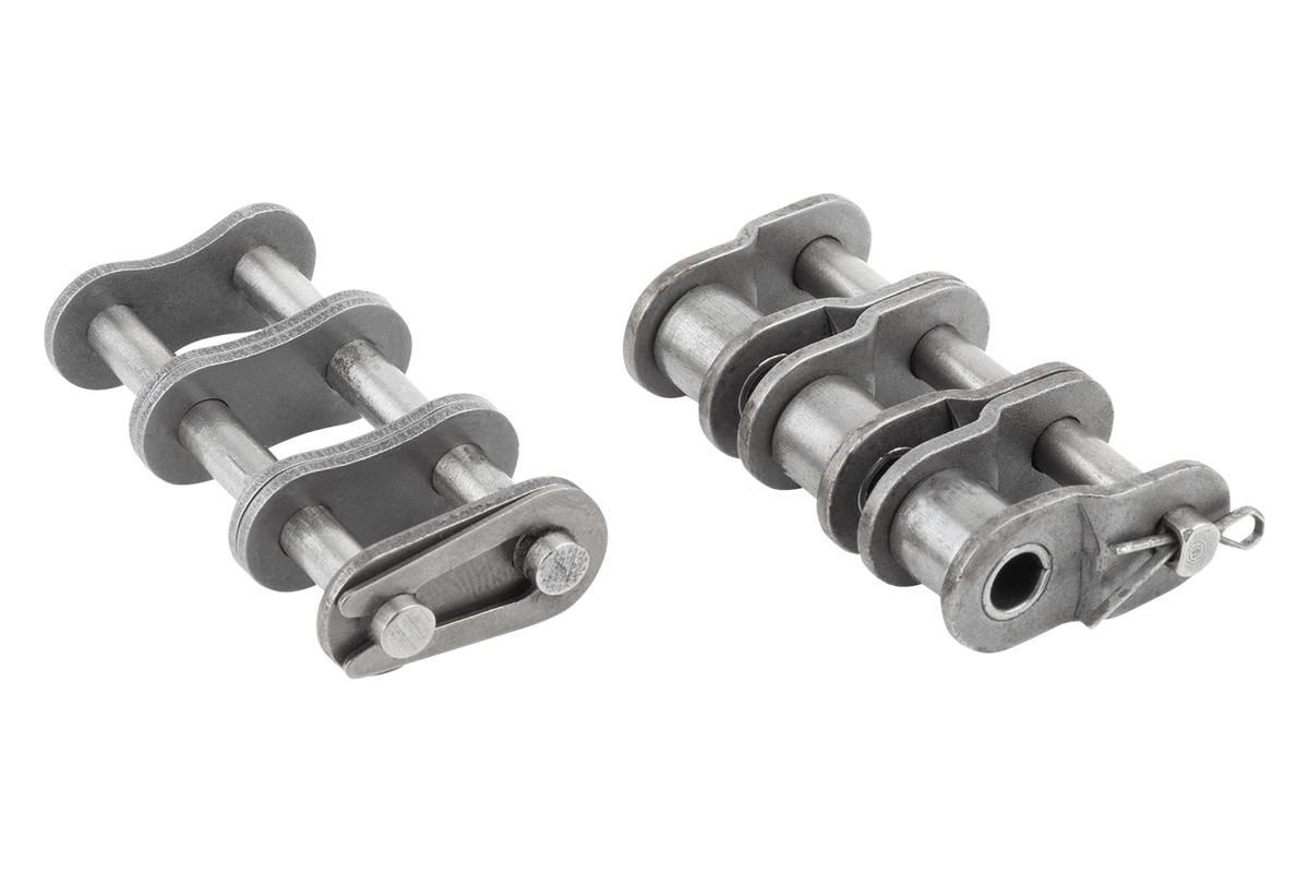 Maillons de liaison pour chaînes à rouleaux triples selon DIN ISO 606.