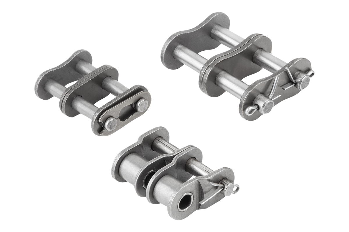 Maillons de liaison pour chaînes à rouleaux doubles selon DIN ISO 606.