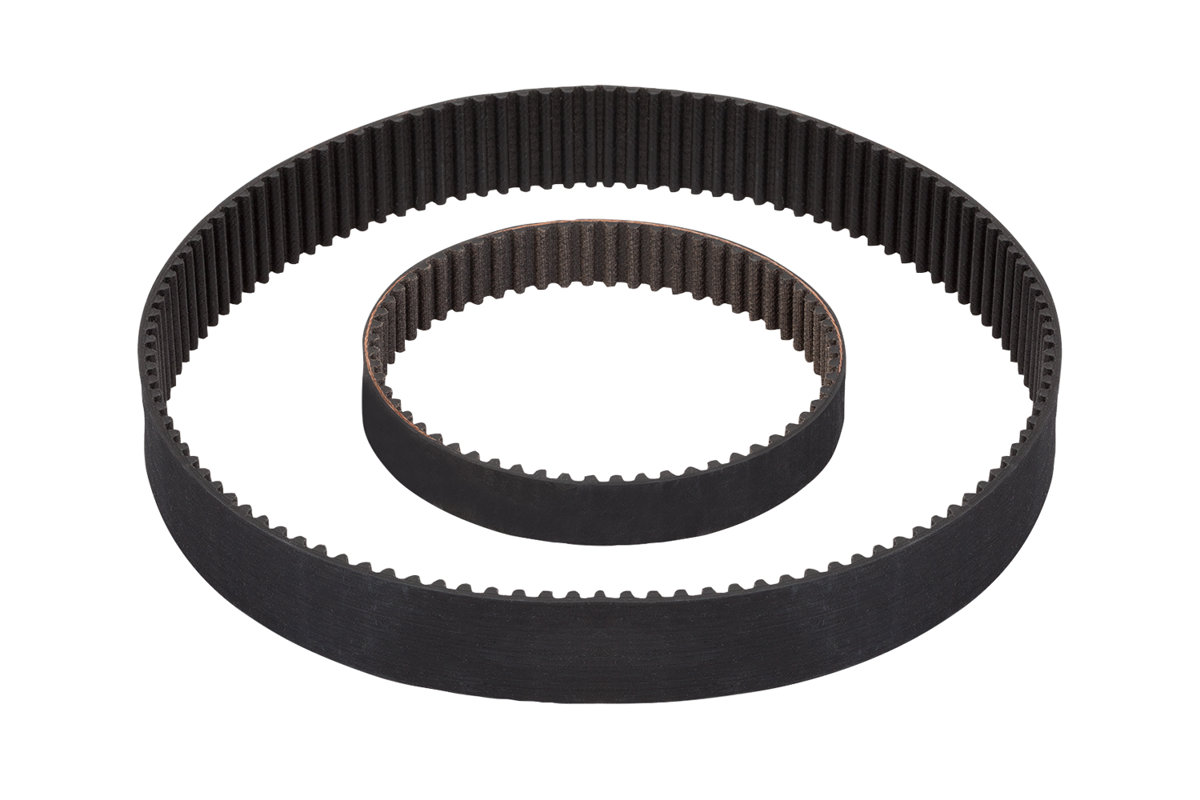 Courroies dentées fabriquées sans fin, profil en arc de cercle conforme ISO 13050 avec une division métrique. La forme semi-circulaire du contour de dent garantit une très haute sécurité contre les sauts de dent, combinée à un engrènement très rond.