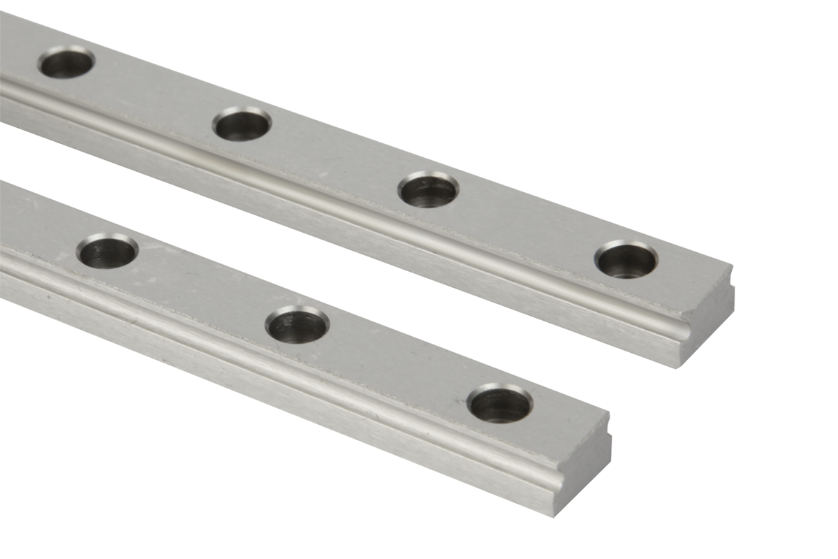 Rails de guidage profilés à fixation par le haut. Les rails de guidage profilés miniatures sont disponibles en quatre tailles, permettant le montage d'un ou de plusieurs chariots de guidage. Système à recirculation de billes à 4 points de contact à 45° et 2 circuits de billes par chariot, permettant de supporter uniformément les charges dans toutes les directions. Accélération max. : 80 m/s². Vitesse de déplacement max. : 3 m/s. Résiste à des températures de -20 °C à +80 °C. L'assemblage des rails n'est pas possible.