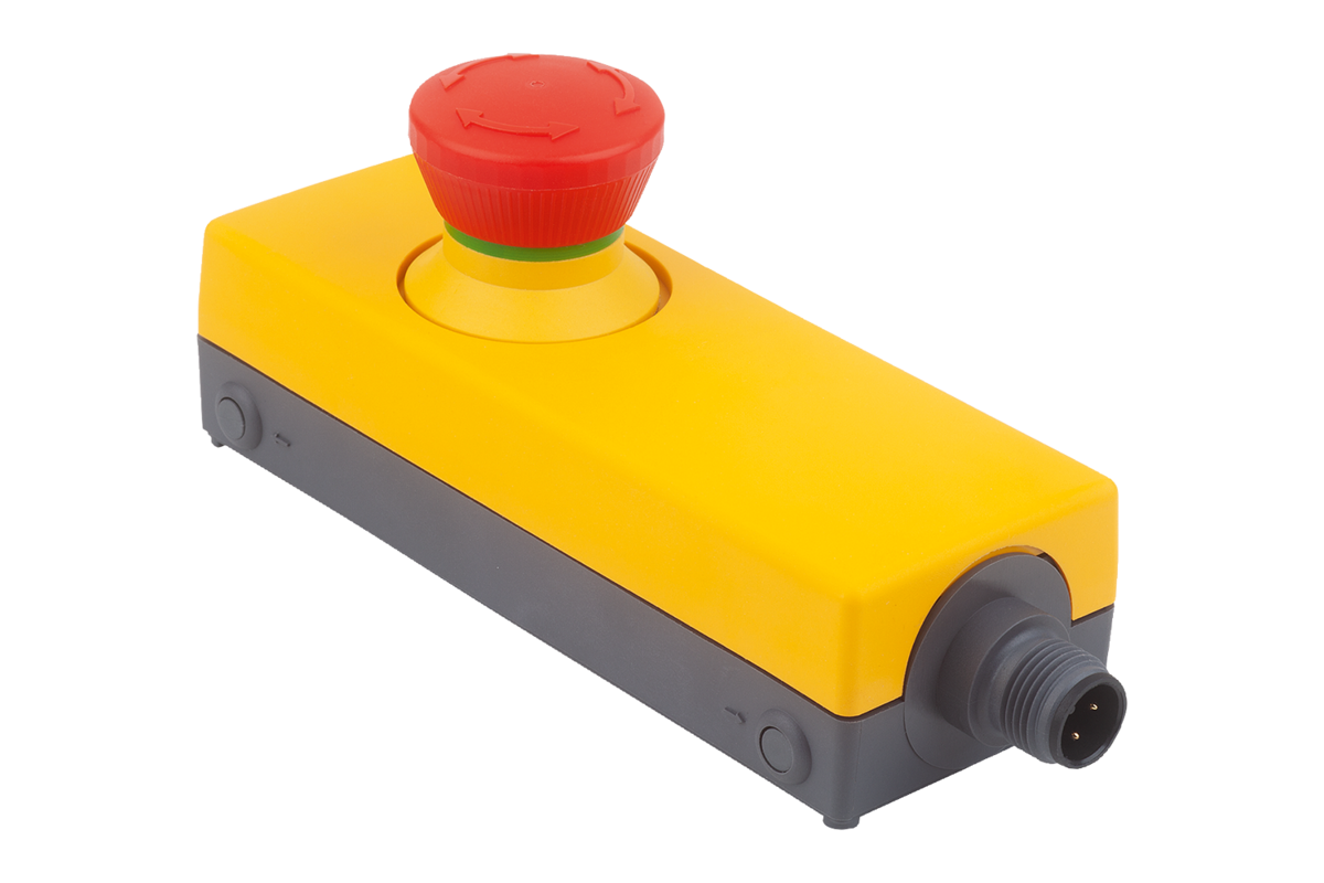 I pulsanti di emergenza servono per la disattivazione manuale di macchine e impianti in caso di pericolo. Il pulsante si blocca all'attivazione e può essere sbloccato ruotando verso destra o verso sinistra. Il pulsante rosso è posizionato su un fondo giallo. In tal modo è facilmente riconoscibile.