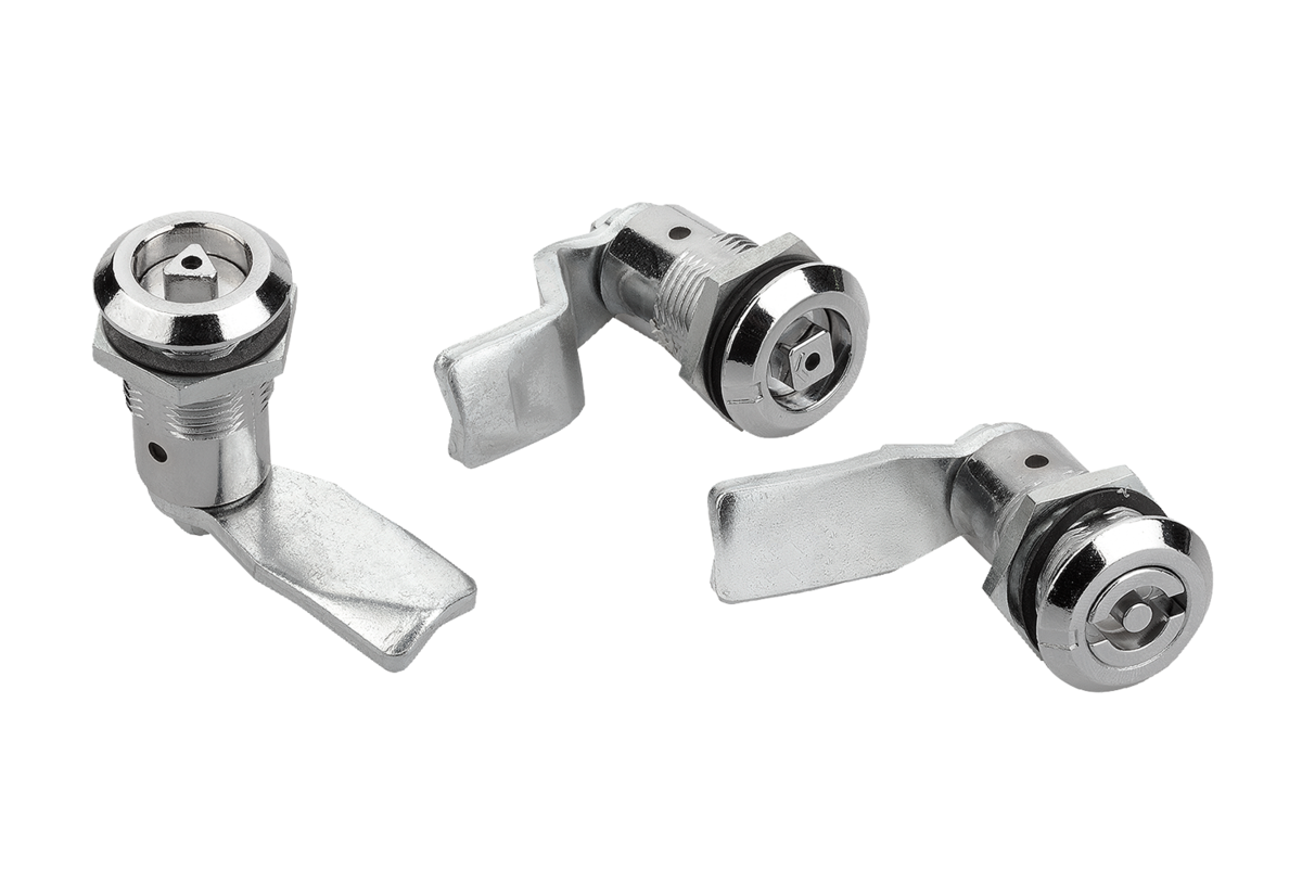 Le serrature girevoli a pressione vengono impiegate principalmente per le porte e gli alloggiamenti dove è necessaria una pressione di contatto della guarnizione maggiore. Inseribili a destra o sinistra.Il procedimento di chiusura procede sempre in senso orario. La serratura girevole può essere inserita pre-montata. Resistente alle vibrazioni grazie al meccanismo di ritenuta con sollecitazione elastica nella posizione di finecorsa ”bloccata”. Testata a norma DIN EN 60068-2-64 (oscillazione) e DIN EN 60068-2-27 (urto), norma di prova 61373. Resistenza alle vibrazioni secondo i requisiti per applicazioni ferroviarie della categoria 1, classe B (=requisito massimo).