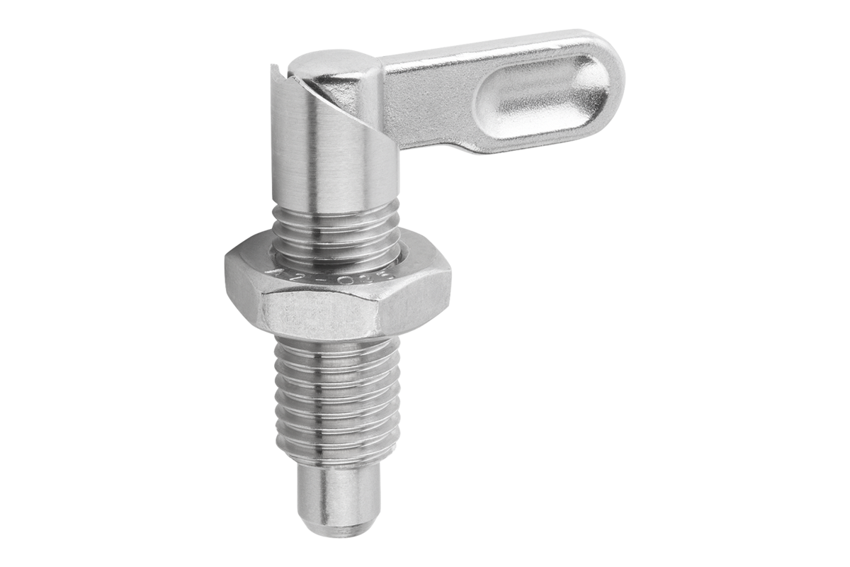 Le spine di posizione a leva vengono utilizzate quando il perno di bloccaggio non deve sporgere temporaneamente. Ruotando la barra di bloccaggio di 180° il perno di bloccaggio si ritrae.