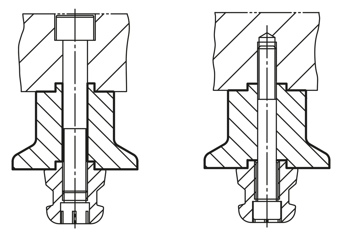 Bulloni di fissaggio ossidati. Superfici funzionali temprate e rettificate.