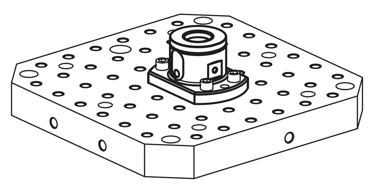 I moduli base a 5 assi UNILOCK possono essere adattati direttamente a tavole di macchine con sistema a griglia forata o a tavole con cave a T, nonché a pallet a griglia con passo 40/50 mm, sistema M12. Compatibili con sistema di serraggio a punto zero UNILOCK con bulloni di fissaggio UNILOCK. Possono anche essere montati direttamente su sistemi di serraggio a punto zero standard utilizzando un bullone di fissaggio adattatore appropriato.