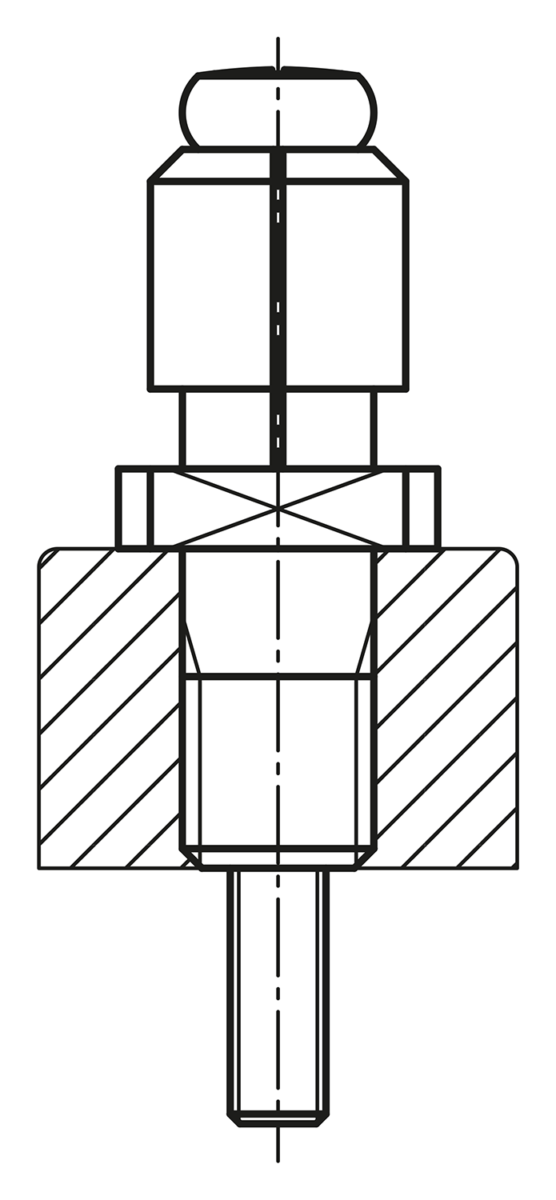 Bei Bedarf kann der Durchmesser D dem zu spannenden Durchmesser angepasst werden. In diesem Fall den Spanndorn ca. 0,2 mm (Spannweg) über den Durchmesser im Ruhestand weiten, indem man die Zugstange (Linsenschraube mit Kreuzschlitz) mit der beigestellten Sechskantmutter befestigt. Nun wird der Spanndorn auf den Innendurchmesser des Werkstückes geschliffen.
