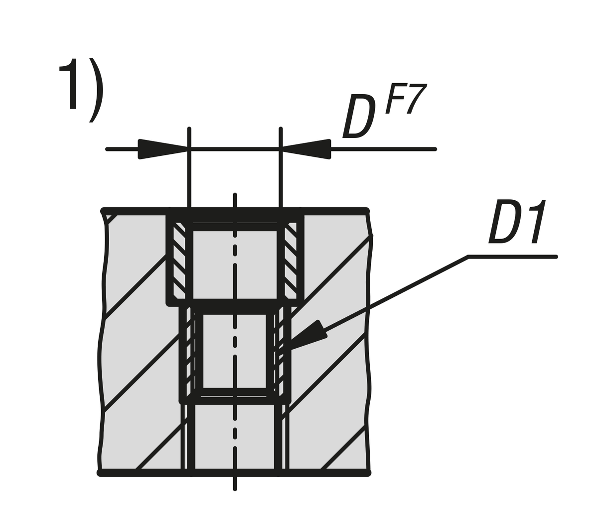 2) Durchgangsbohrung für Zylinderschraube DIN 912, M16