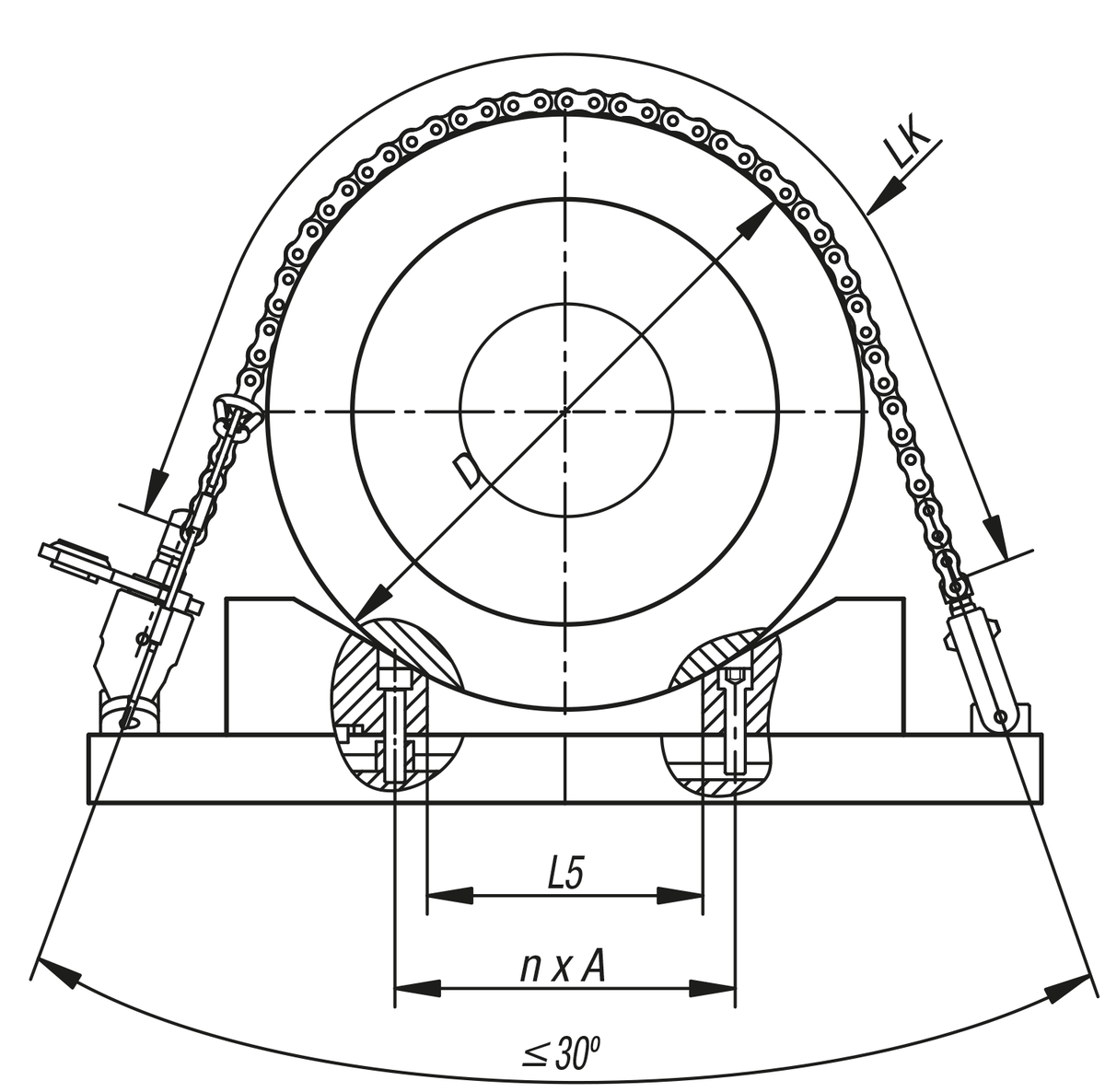 Rollenketten für Kettenspanner-Sets können bei den Kettenspanner-Sets (04211) zum Spannen von runden, unförmigen und großen bis sehr großen Werkstücken verwendet werden. Die Rollenketten können gekürzt und beliebig mit anderen Rollenketten zusammengefügt werden.