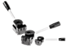 Niederzugspanner Stahl mit Spannhebel und Zentrierbuchse, Spannbacke mit zwei Hartmetalleinsätzen, rund und Prisma