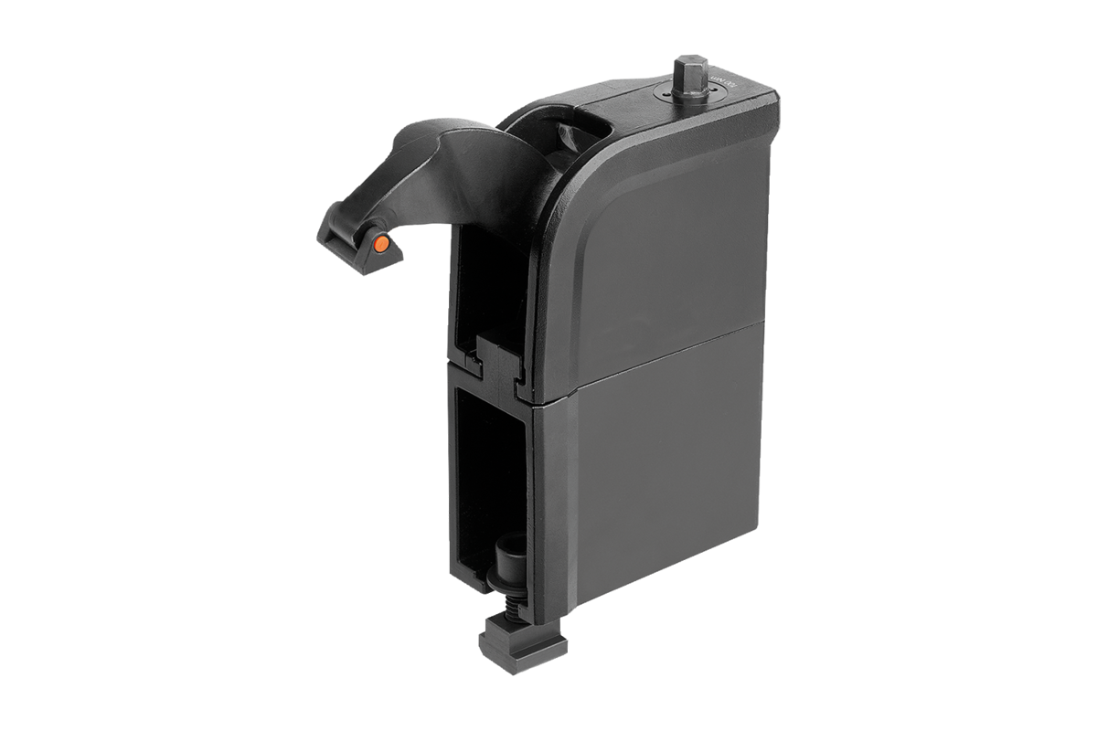 Der Schnellverschluss ermöglicht eine schraublose Verbindung der Erhöhungen untereinander und mit dem Kraftspanner kompakt.