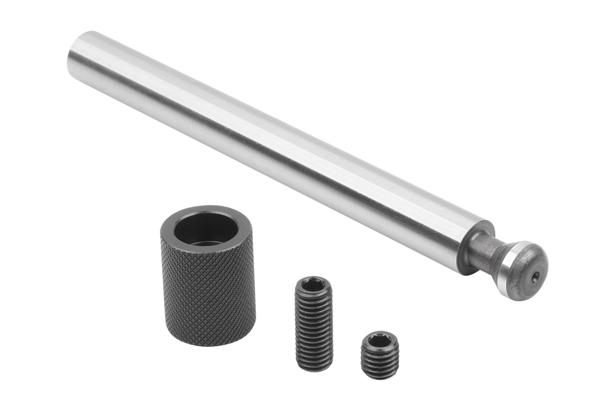Nach der Bearbeitung des Spannbolzen auf die richtige Gesamtlänge wird der Rändelknopf mit den beiden Gewindestiften auf dem Spannbolzen befestigt und gekontert.
