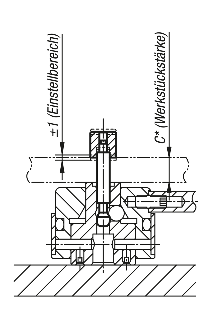 Entsprechend der Werkstückstärke muss das Maß C kundenseitig selbständig angepasst werden.