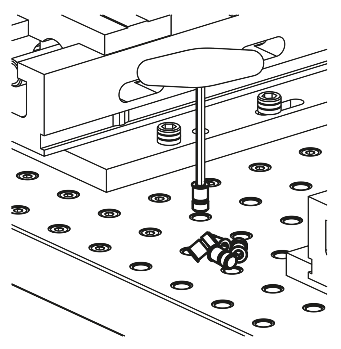 Afin de protéger les taraudages des copeaux et de la poussière, ceux-ci doivent être fermés à l´aide des bouchons de protection. Laisser les bouchons de protection dans les trous qui ne sont pas utilisés !