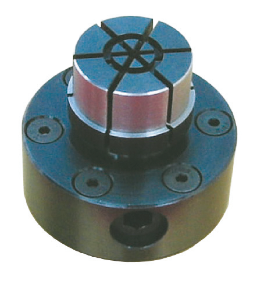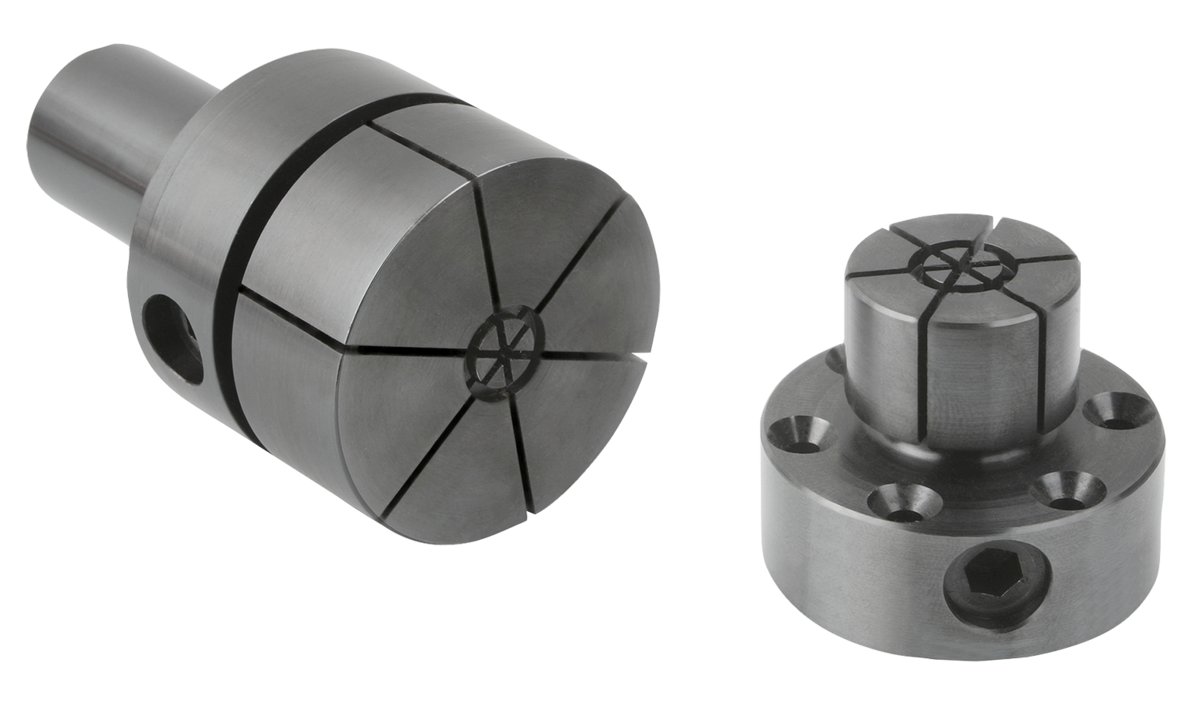 Le mandrin de centrage convient, grâce à la commande de serrage latérale, tout particulièrement pour la reprise d’usinage de pièces tournées et rectifiées ayant un trou borgne. Le diamètre D peut être adapté au diamètre de serrage de la pièce à usiner, soit par tournage, soit par rectification.