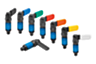 Les doigts d’indexage verrouillables sont utilisés lorsqu'il faut éviter tout déplacement de la position d'arrêt sous l'effet de forces transversales. Une rotation à 180° du verrou entraîne la rétractation du doigt d'arrêt, ce qui permet de modifier la position d'arrêt. L'encoche d’arrêt permet de maintenir le verrou dans cette position et le doigt d'arrêt rétracté.