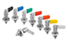 Disponible avec des capuchons de verrouiilage en plastique de couleur au choix.