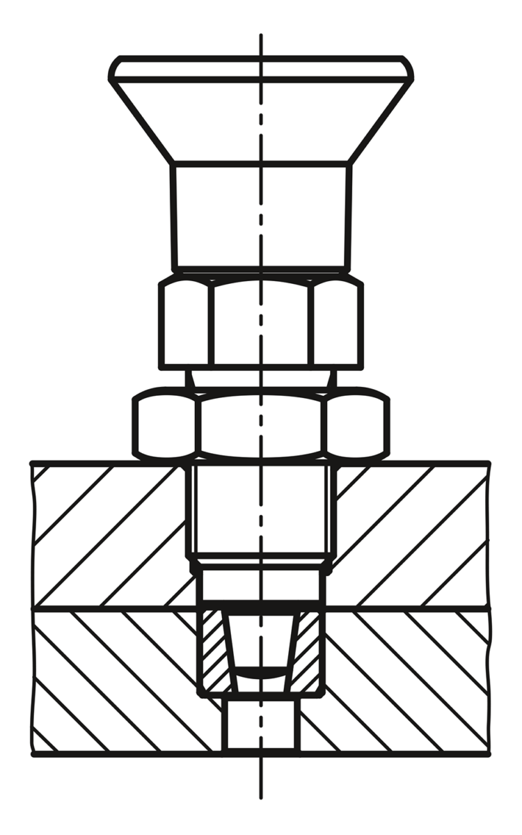 Les surfaces d'appui coniques sont adaptées sur la douille filetée et le contre-écrou.
