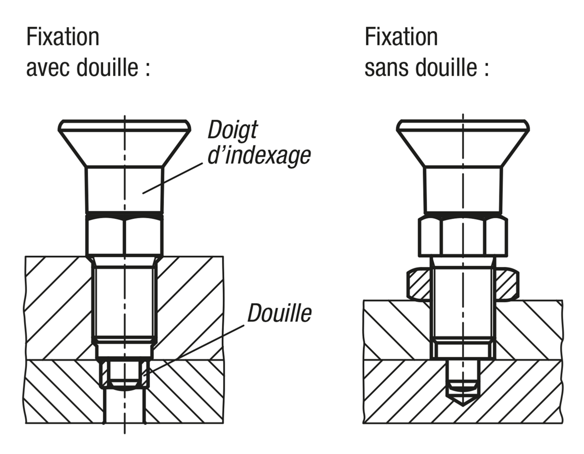 - Point de centrage sur la douille filetée pour augmenter la précision du positionnement