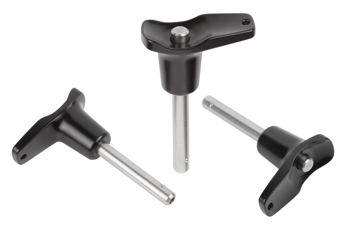 Les goupilles d'arrêt permettent d'assembler ou de fixer rapidement et simplement des pièces ou des éléments. Un appui sur le bouton pression permet de déverrouiller les deux billes et donc de désolidariser les pièces. En relâchant le bouton pression, les billes se bloquent et procurent un assemblage sûr. Les goupilles d'arrêt peuvent, si nécessaire, être équipées d'une corde de maintien.