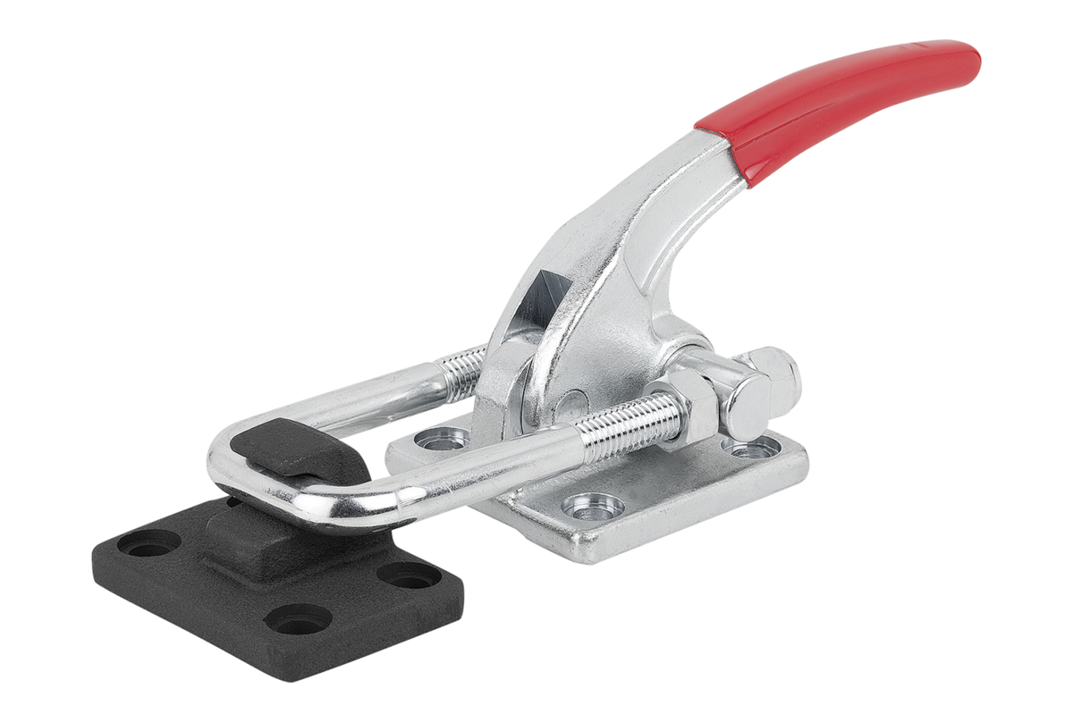 Les sauterelles à étrier conviennent particulièrement pour fermer et fixer rapidement des couvercles et des clapets. La course de réglage sur l'étrier peut être réglée individuellement pour chaque modèle.