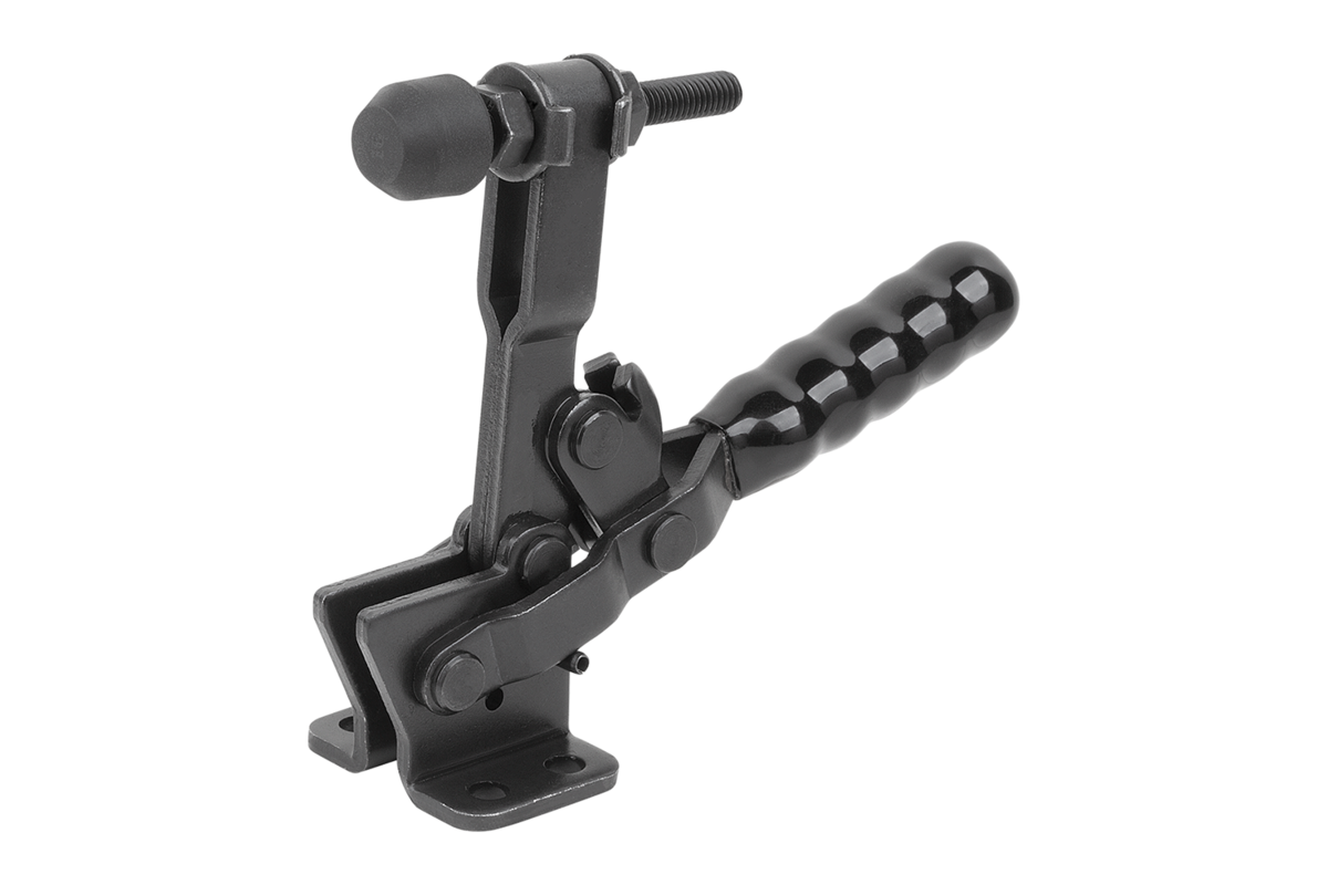 Sauterelle en acier noir, verticale à pied horizontal et broche de pression réglable, forme A, petite