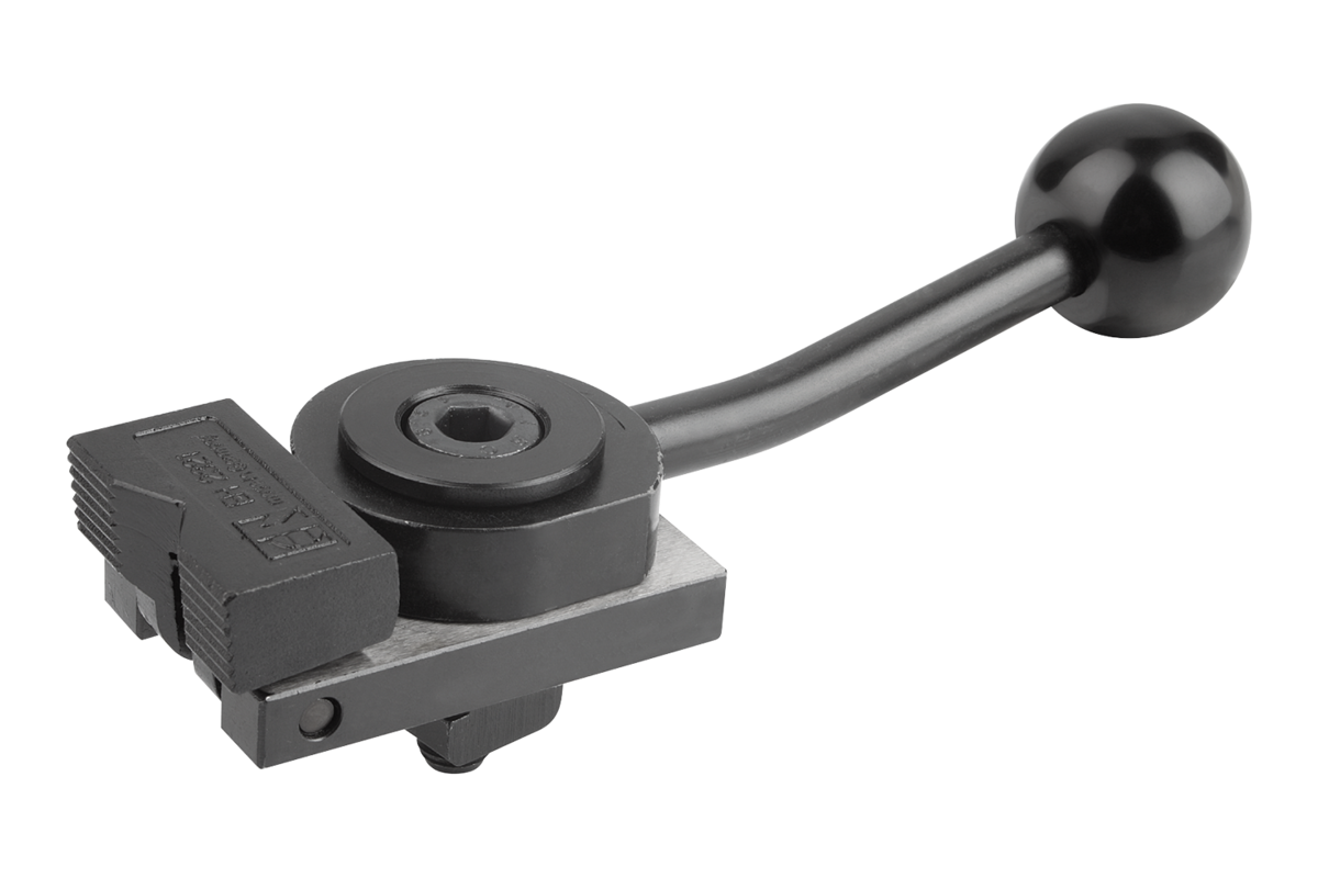 Le crampon plaqueur à levier permet de serrer rapidement une pièce à usiner. La faible hauteur permet de rendre la pièce à usiner plus accessible et évite souvent la réalisation d´un montage spécifique. Lors du desserage, un ressort rappelle le mors automatiquement.