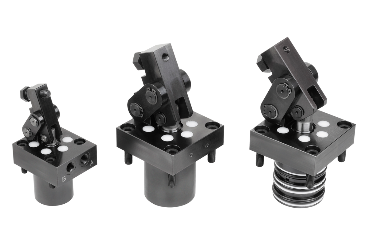 Les vérins de bridage à levier peuvent être utilisés de manière optimale lorsque, en raison de la situation de serrage, la pièce à usiner doit être retirée librement par le haut à l'état non serré. En raison du mouvement linéaire de la poignée indexable lors de l'ouverture et de la fermeture du vérin de bridage à levier, celui-ci est particulièrement indiqué pour les situations de serrage dans lesquelles un mouvement latéral de l'élément de bridage n'est pas possible, par ex. à cause de contours gênants. La force est transmise à la poignée indexable du vérin de bridage à levier via le piston. Grâce au fonctionnement à double effet des vérins de bridage à levier, les temps d'ouverture et de fermeture sont clairement définis.