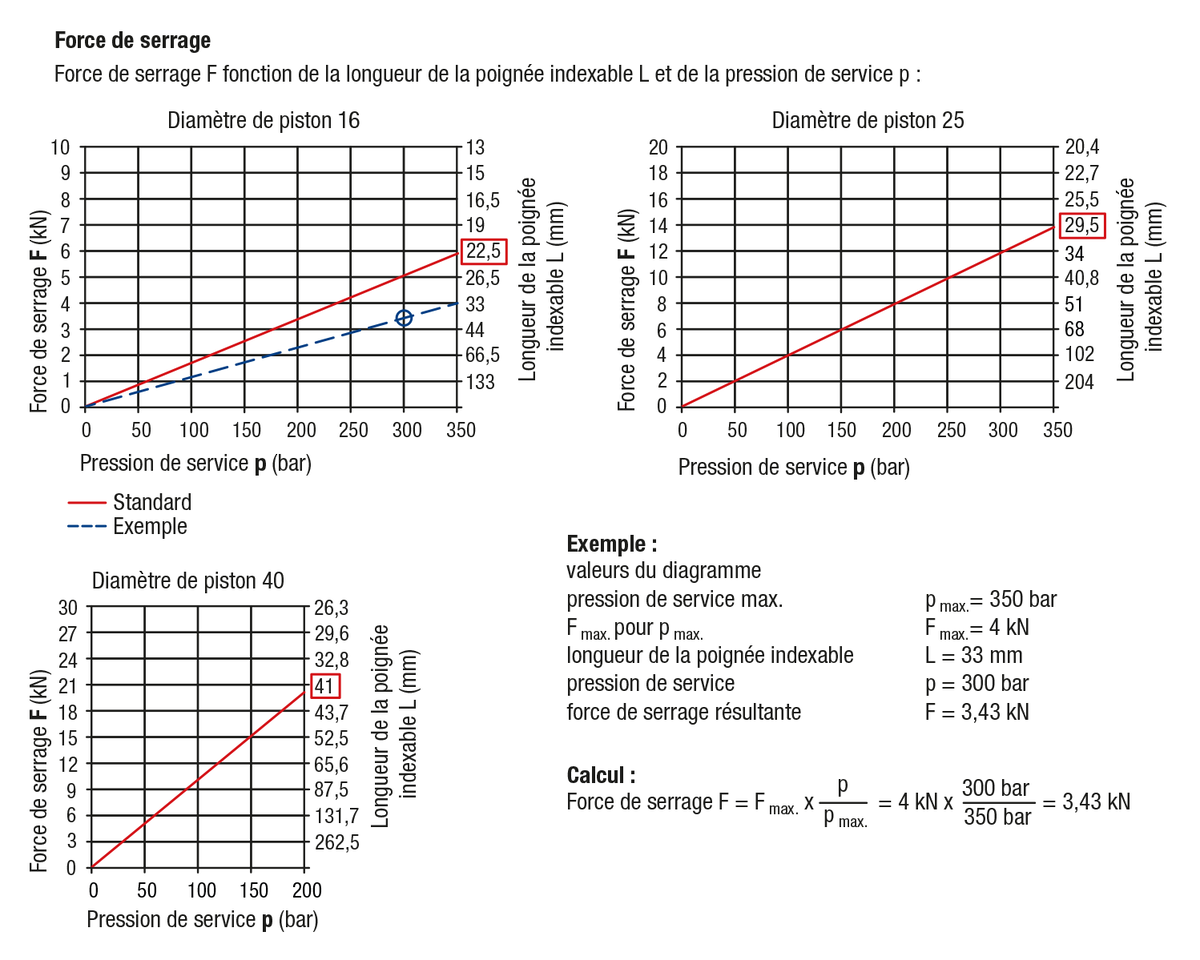 - Pression de service max. pour diamètres de piston 16 et 25 : 350 bar.