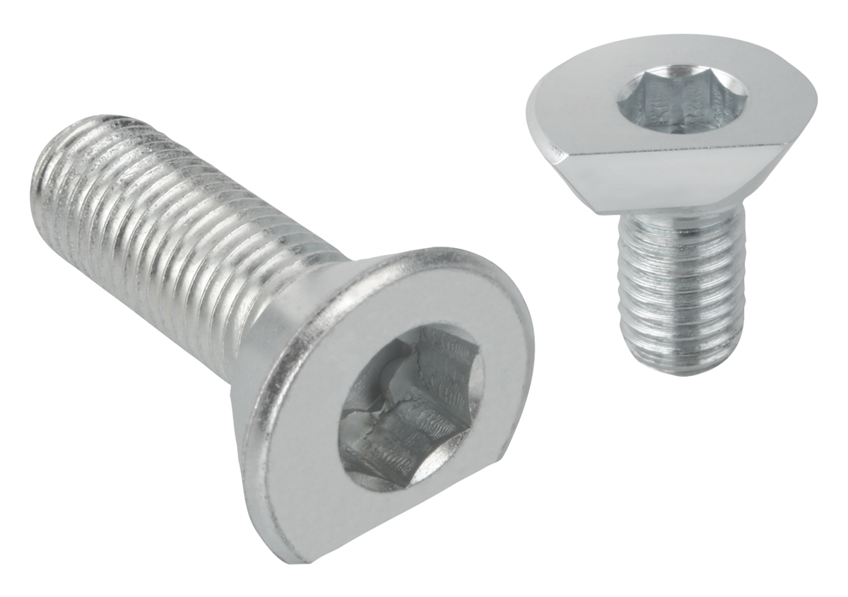 Vis excentriques à tête fraisée, stables et compactes, permettant d'effectuer un serrage avec effet de plaquage sur les formes de pièces à usiner les plus variées.