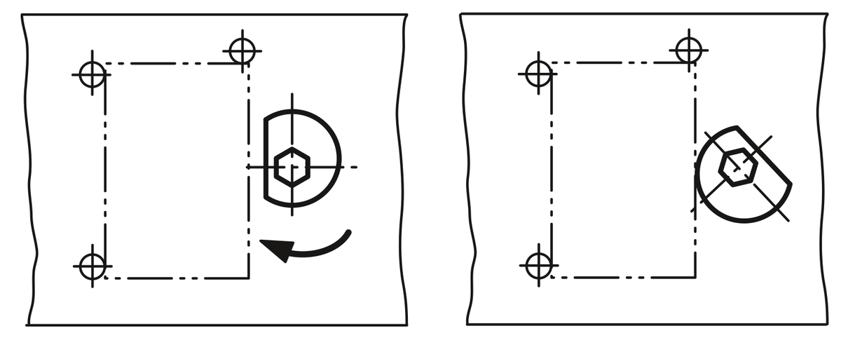Faire un ou plusieurs trous taraudés à la distance prescrite X ou Z par rapport à la pièce à usiner. Visser la vis excentrique à la hauteur requise et avec la face plate par rapport à la pièce à usiner. Placer la pièce à usiner et serrer la vis excentrique à l'aide du six pans creux. Le serrage est réalisé avec 1/3 de tour environ. Le taraudage doit être lubrifié régulièrement.