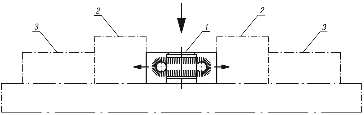 En fonction des besoins, les mors de serrage correspondants peuvent être fixés dans un trou de trame ou dans une rainure en T. Une rotation de la vis CHC DIN 912 déplace les deux mors de serrage vers l'extérieur et cale les pièces à usiner contre une butée fixe.