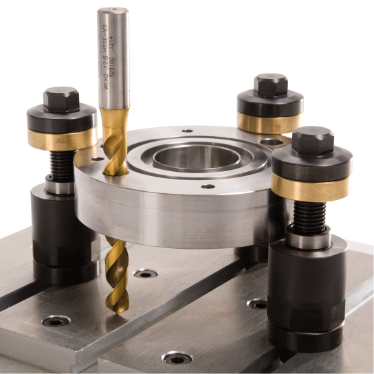 Le corps cylindrique évite d'endommager la table de la machine et empêche les déplacements lors du serrage. La bague de serrage en laiton évite de marquer la pièce.