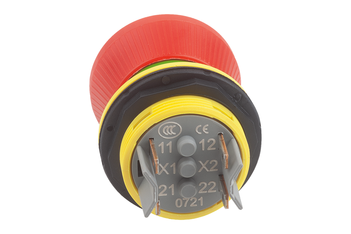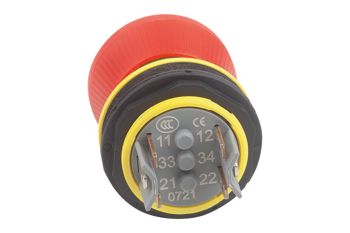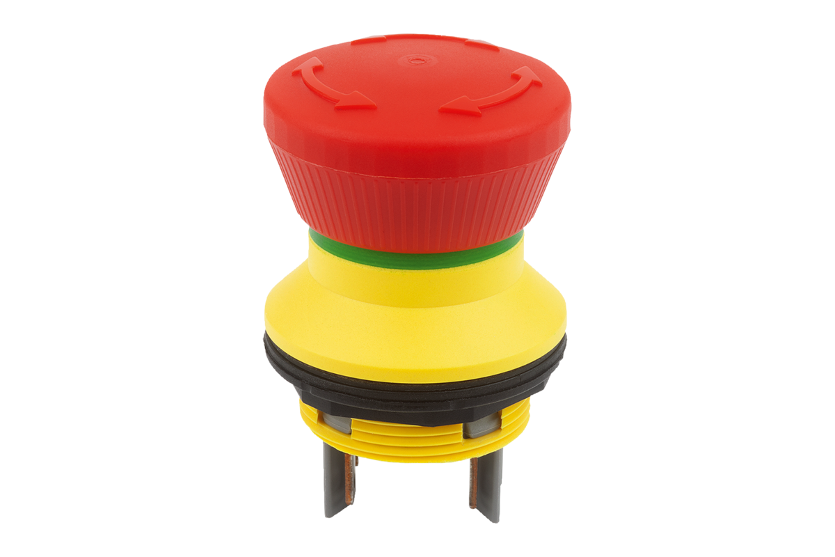 Pulsanti di emergenza servono per la disattivazione manuale di macchine e impianti in caso di pericolo. Il pulsante si blocca all'attivazione e può essere sbloccato ruotando verso destra o verso sinistra. Il pulsante rosso è posizionato su un fondo giallo. In tal modo è facilmente riconoscibile.