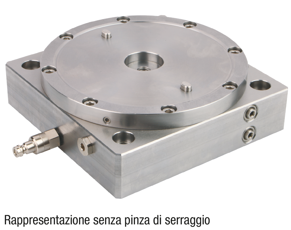 Piastra flangiata, pistoni e corpo base inossidabili, in finitura naturale.