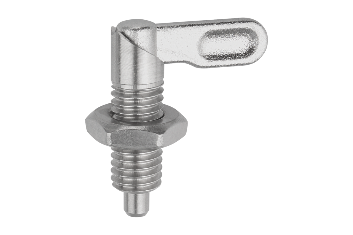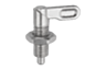 Le spine di posizione a leva vengono utilizzate quando il perno di bloccaggio non deve sporgere temporaneamente. Ruotando la barra di bloccaggio di 180° il perno di bloccaggio si ritrae.