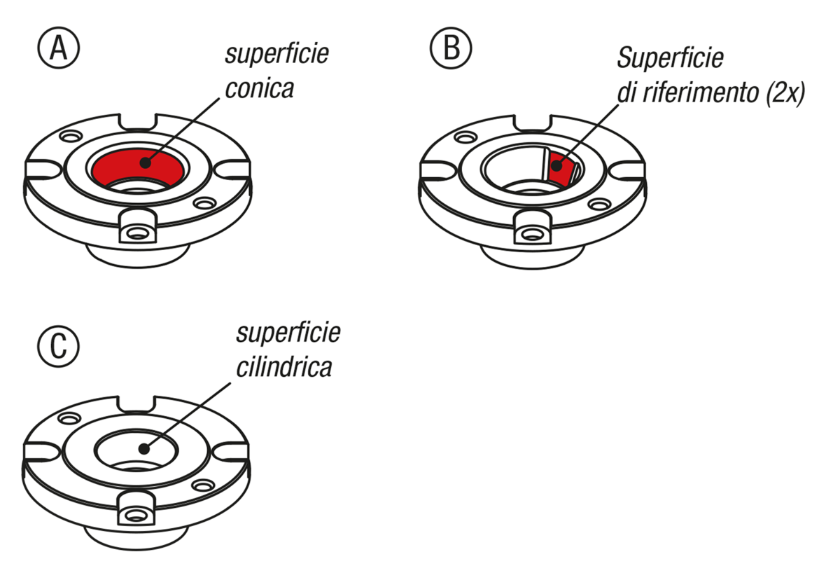 Le bussole portamaschi vengono centrate in un foro alesato e fissate con 4 viti.