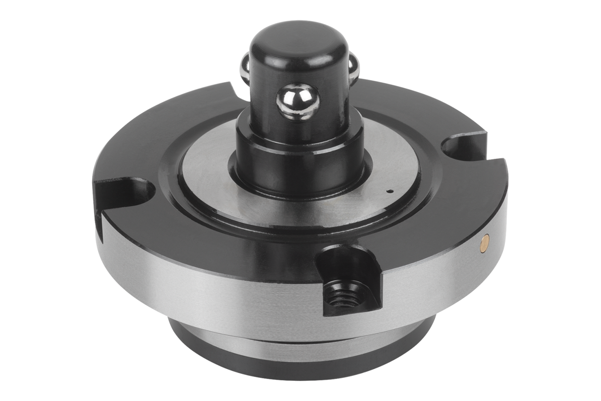 Grazie al comando del cilindro di posizionamento con il collegamento di ”apertura”, vengono attivate meccanicamente le 3 sfere di bloccaggio. Le 3 sfere di bloccaggio si spostano all'interno e il dispositivo è sostituibile rapidamente. Per il serraggio, l'aria viene tolta dal collegamento di ”apertura” e il collegamento di ”serraggio” riceve aria dal cilindro di posizionamento. Le 3 sfere di bloccaggio vengono riportate meccanicamente all'esterno e il dispositivo di cambio viene serrato.