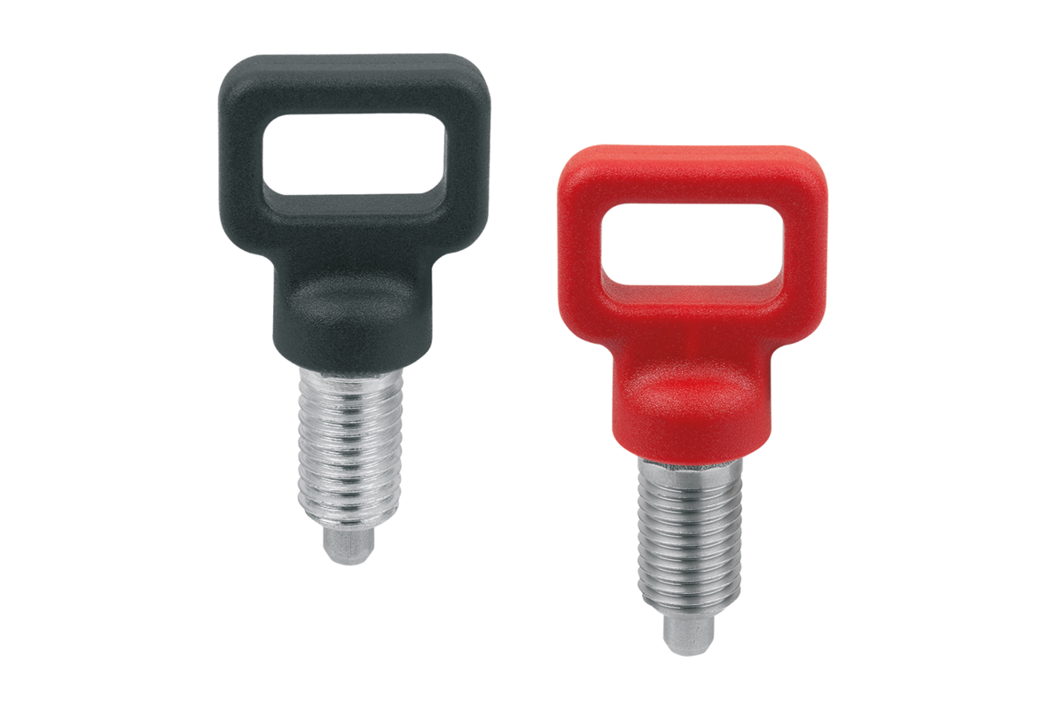Impugnatura a occhiello grigio nerastro RAL 7021 o rosso traffico RAL 3020.
