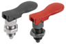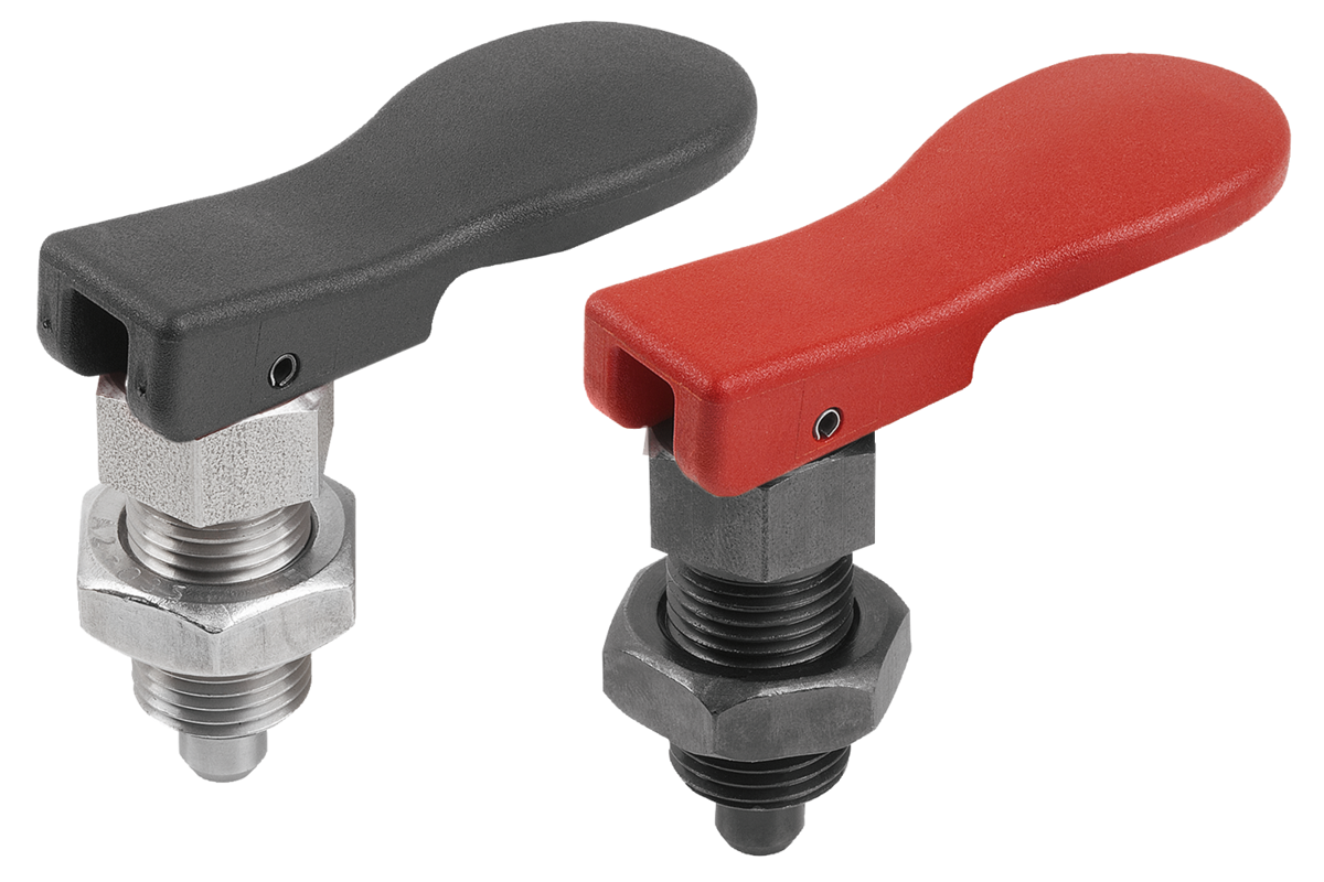Le spine di posizione vengono utilizzate per impedire una modifica della posizione d'arresto per effetto di forze trasversali. Solo dopo il disinnesto manuale del perno è possibile modificare la posizione d'arresto. Con questa spina di posizione, il disinnesto si ottiene mediante maniglia a leva eccentrica. La spina di posizione resta disinnestata se la leva di serraggio viene mossa oltre il punto morto della leva eccentrica.
