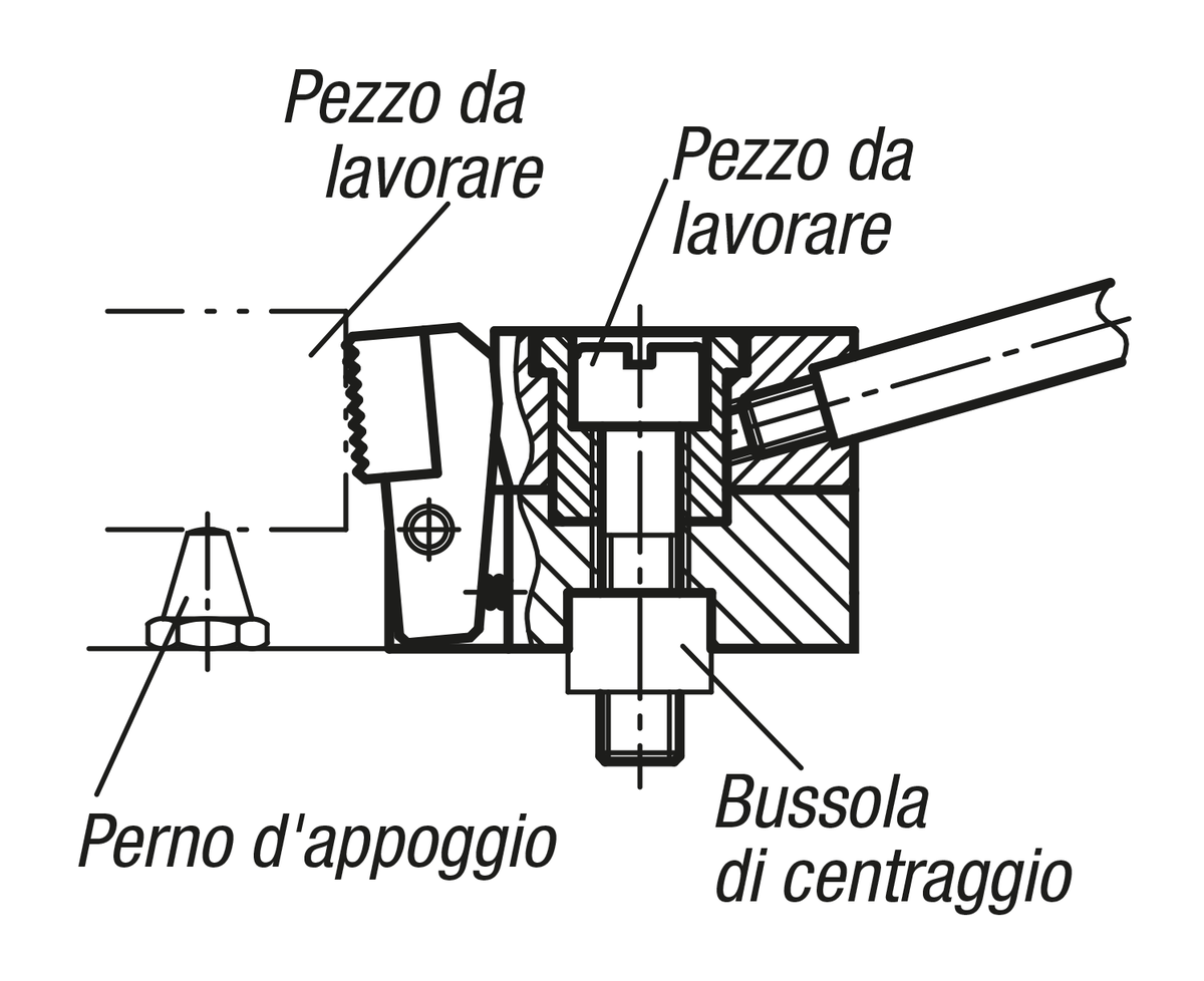 La staffa di fissaggio laterale è un'unità di staffaggio rapido che permette, mediante le ganasce orientabili e l'eccentrico elicoidale, di serrare i pezzi da lavorare contemporaneamente contro le battute fisse e su un appoggio.