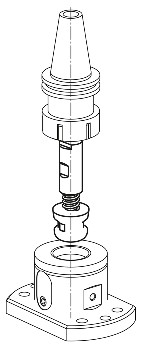 I bulloni di fissaggio centranti possono essere fissati negli adattatori per pinze di serraggio. Mediante il mandrino/controllore della macchina si definisce la posizione del modulo.